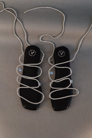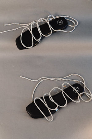 Women's Open Toe Black Stringy Shoe Lace Flats Sandal