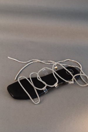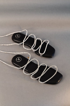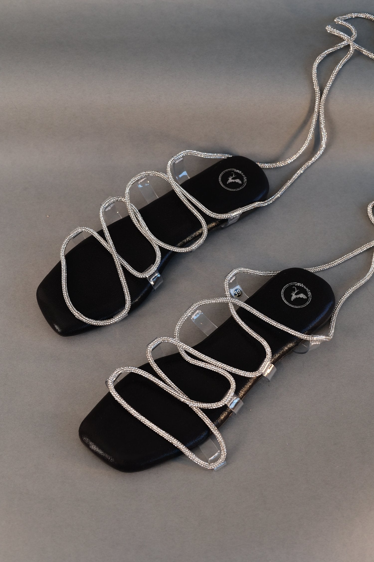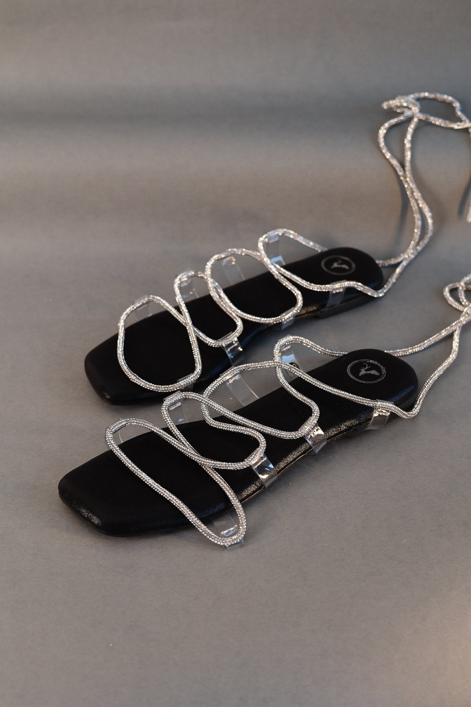 Step into elegance and comfort with these Black stringy shoe lace flats. Their closed-shaped design not only adds a touch of sophistication but also provides extra cushioning for your feet. Perfect for parties and weddings, these unique flats feature charming string details in the front and an elegant back counter. Treat your feet to a beauty treatment with this stylish footwear, offering the perfect blend of fashion and comfort for any occasion.