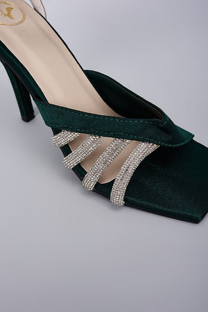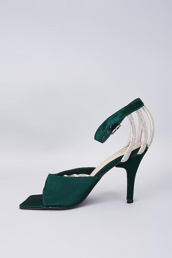 Women's Open Toe Green Elle Crisscross String Heel Sandals