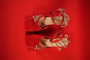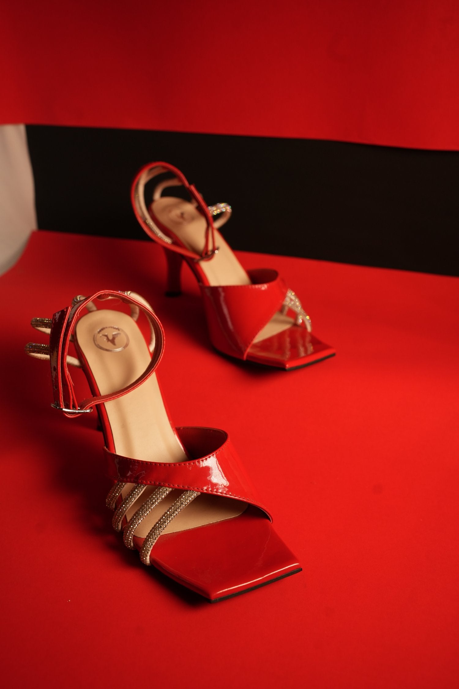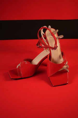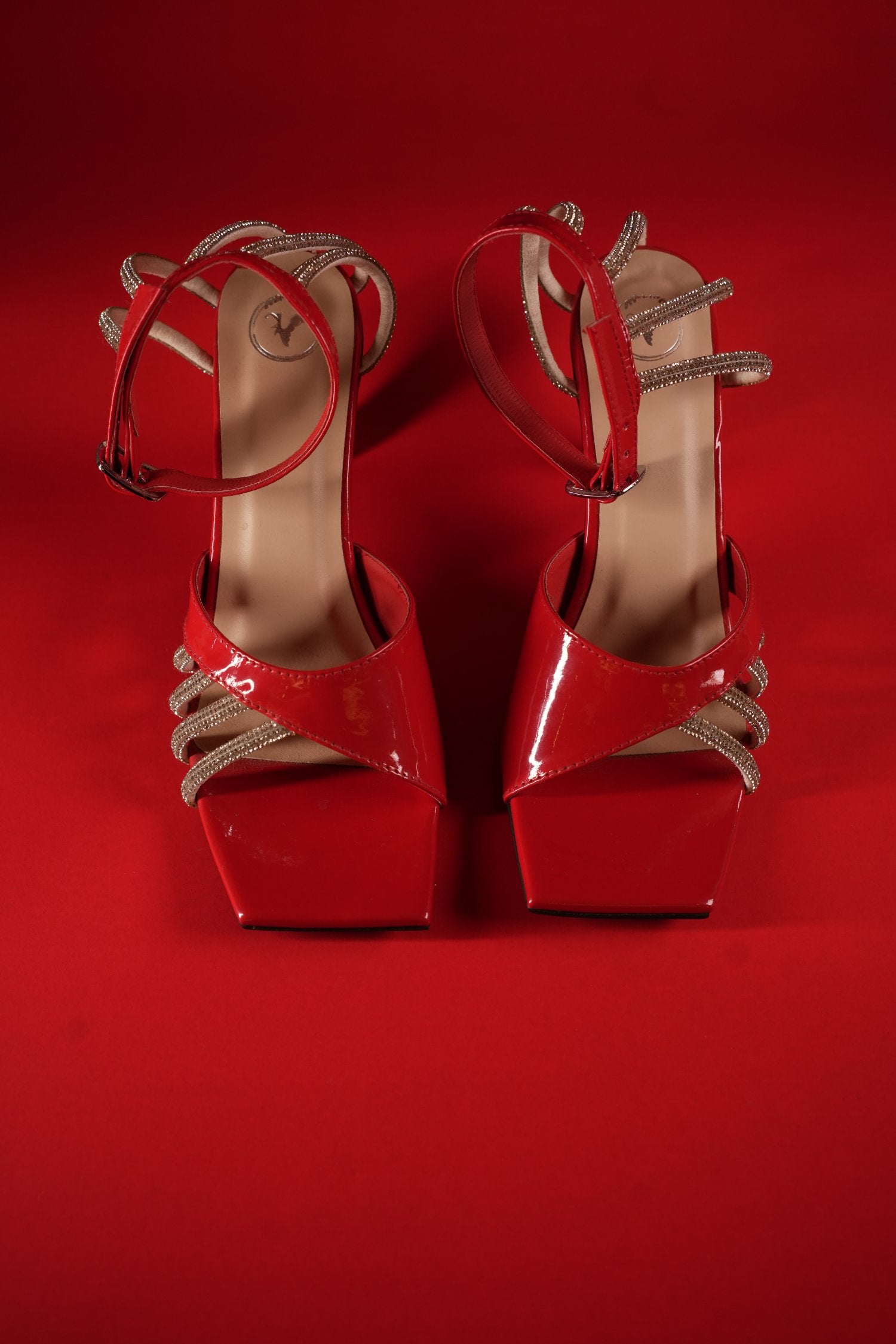 Women's Open Toe Red Elle Crisscross String Heel Sandals