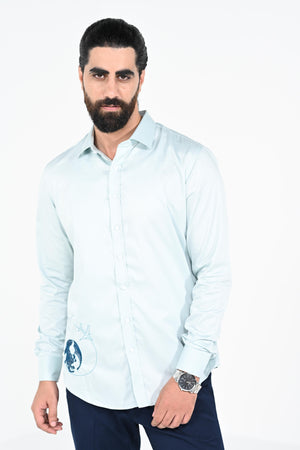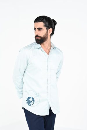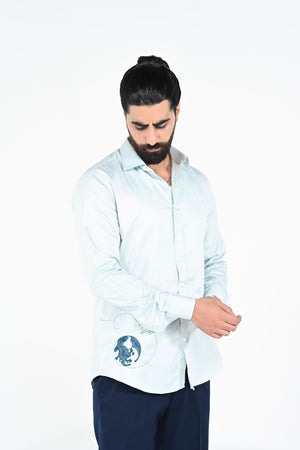 Featuring a Ice blue hand embroidered with thread work on shirt cotton strech base fabric .This contains only one piece. Color of the actual garment may vary due to lighting conditions during the shoot .