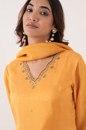 Yellow Booti Silk Kurta Set