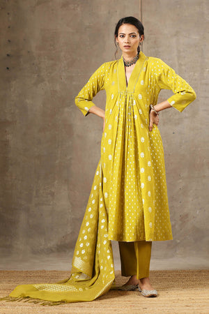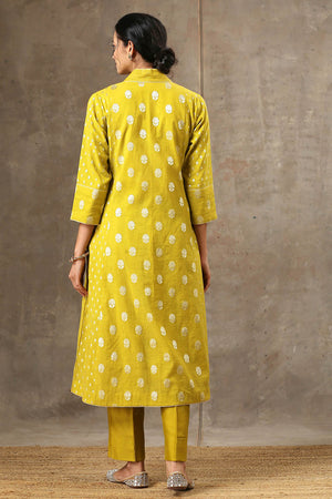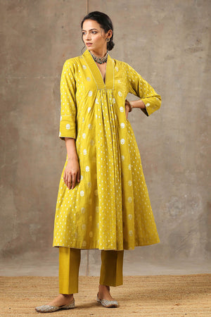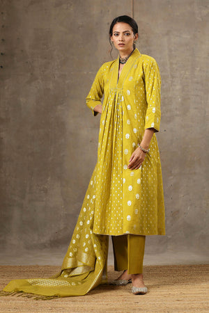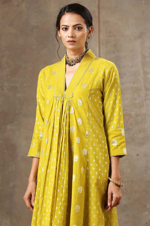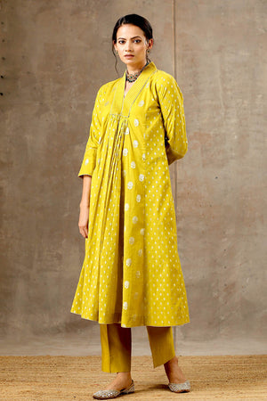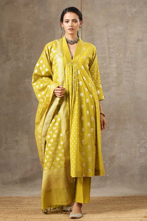 Yellow Chanderi Silk Kurta Set in 5 Kalis