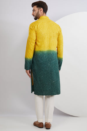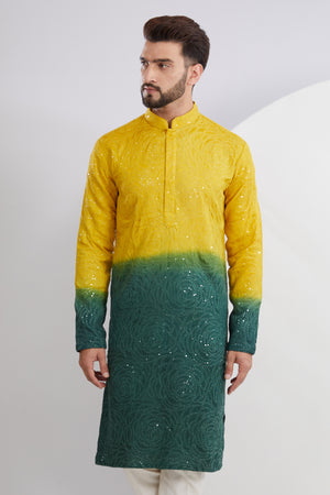 Yellow Green Ombre Kurta with Intricate Floral Embroidery