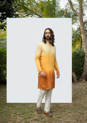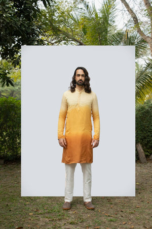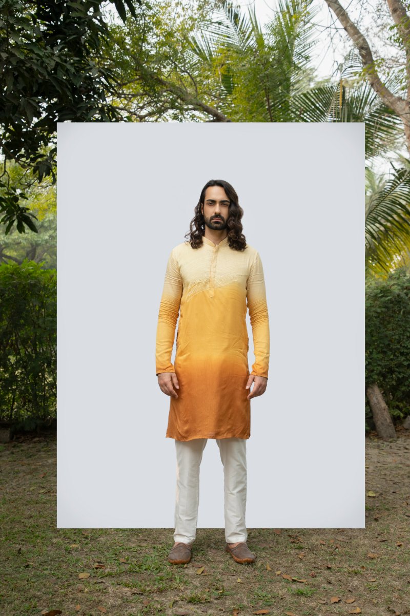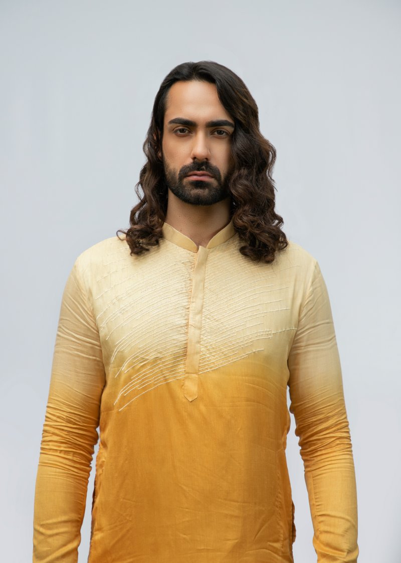 This posh colourblocked kurta with abstract detailing on the chest is paired with pant pajama.Kurta Length- 44''. **The color may slightly vary due to screen lighting