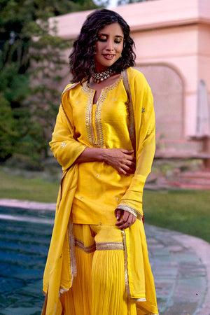 Yellow Silk Georgette Embroidered Sharara Set