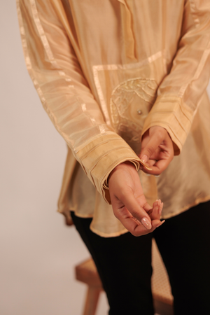 A refined front button-down shirt finished with a structured collar and sharp cuffs.