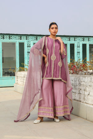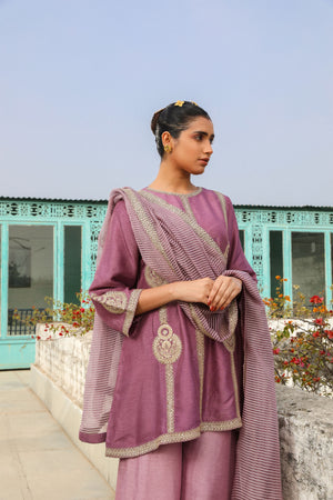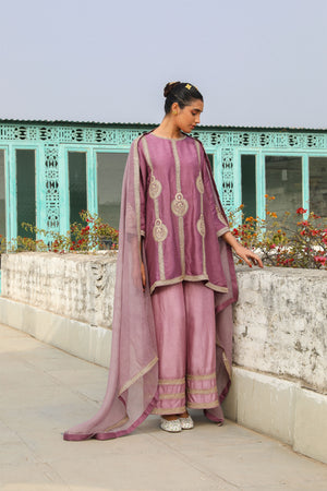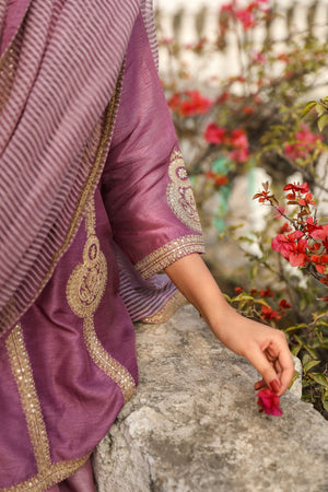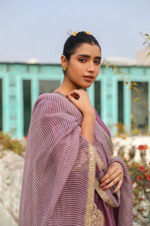 Introducing our exquisite Zainaa Kurta Set, a manifestation of elegance, style, and cultural richness that transcends boundaries. The short kurta with flared pants are adorned with intricate golden zari and sequin embroidery, paired with soft minimal striped dupatta with embellished border.