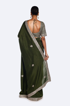 Bemberg Russian saree featuring Zari Kota embroidered edges and a half sleeve blouse.